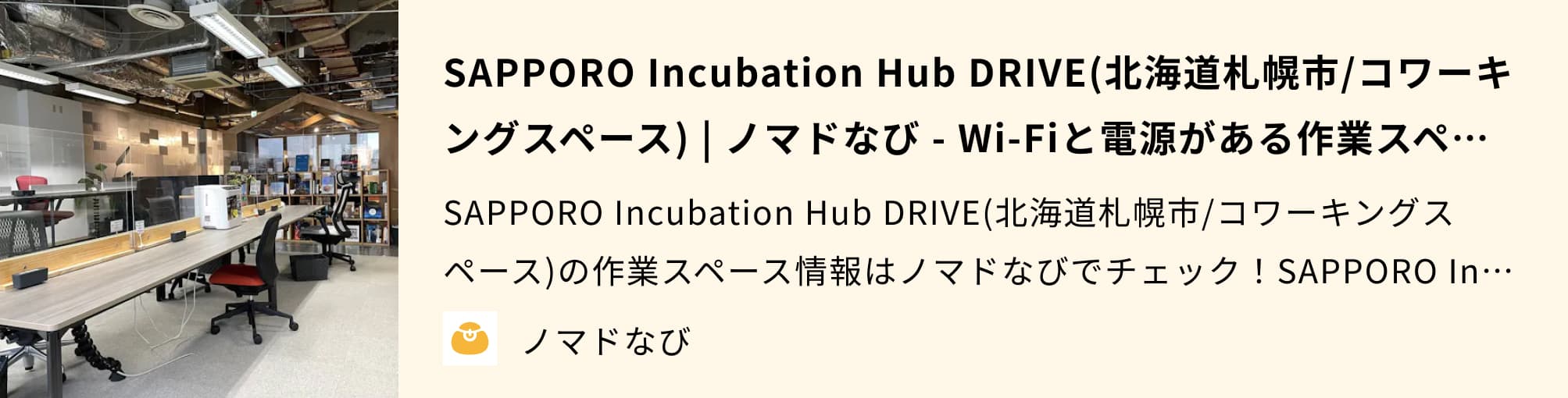 SAPPORO Incubation Hub DRIVE is a coworking space located in Sapporo, Hokkaido.