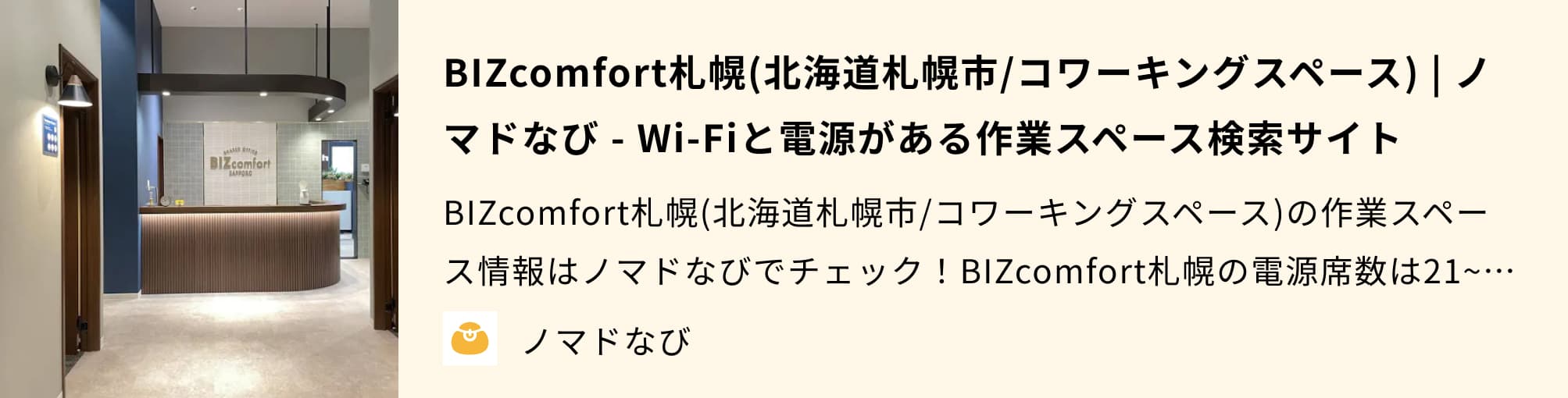 BIZcomfort Sapporo is a coworking space located in Sapporo, Hokkaido.