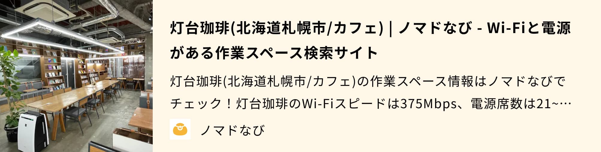 This time, we have carefully selected work-friendly spaces in Sapporo City, Hokkaido, and compiled information on Wi-Fi speeds, number of power outlets, accessibility, and more!