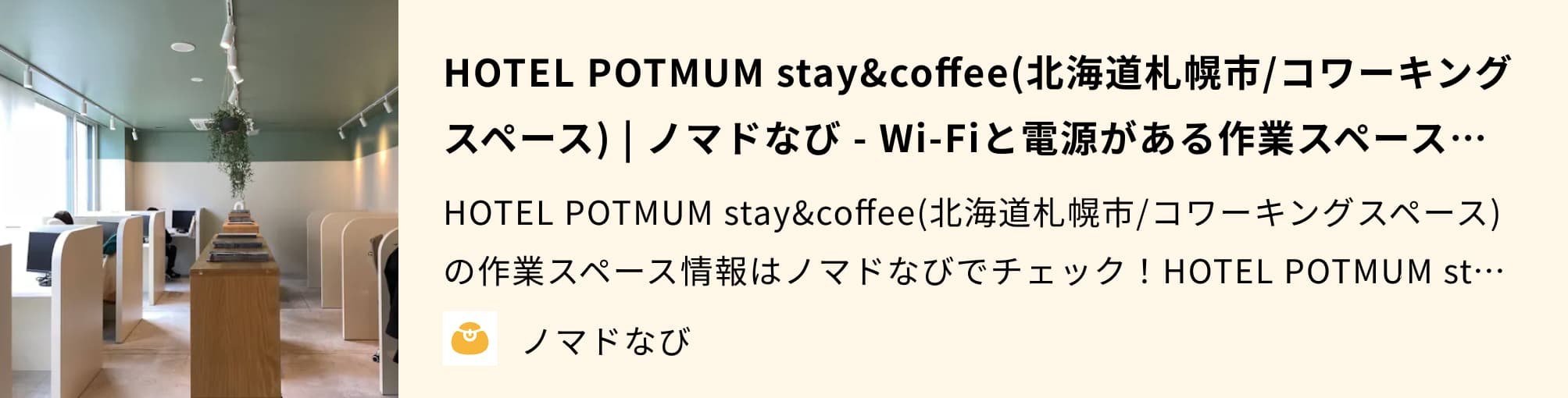 HOTEL POTMUM stay&coffee is a coworking space located in Sapporo, Hokkaido.