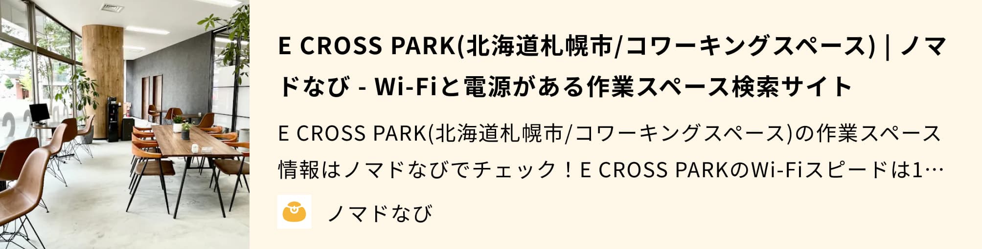 E CROSS PARK is a coworking space located in Sapporo, Hokkaido.