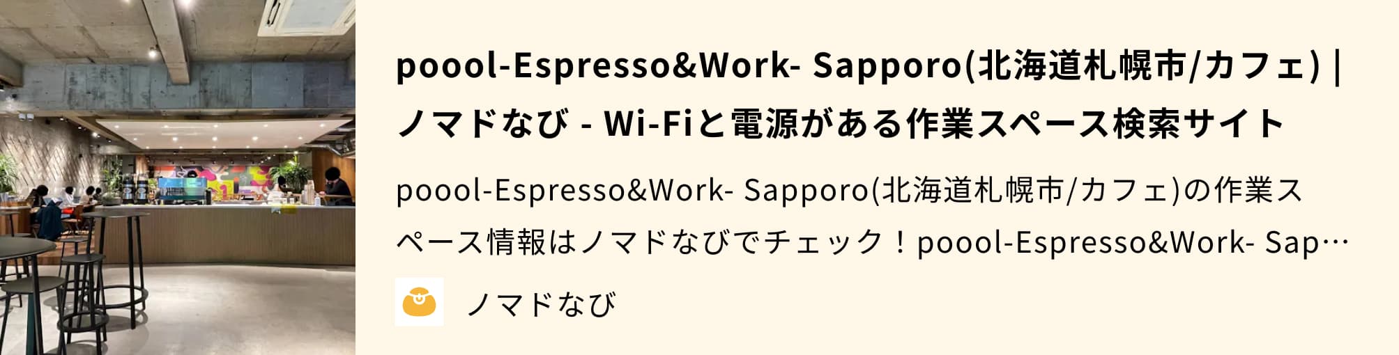 For more detailed information about poool - Espresso & Work - Sapporo, click here: ↓