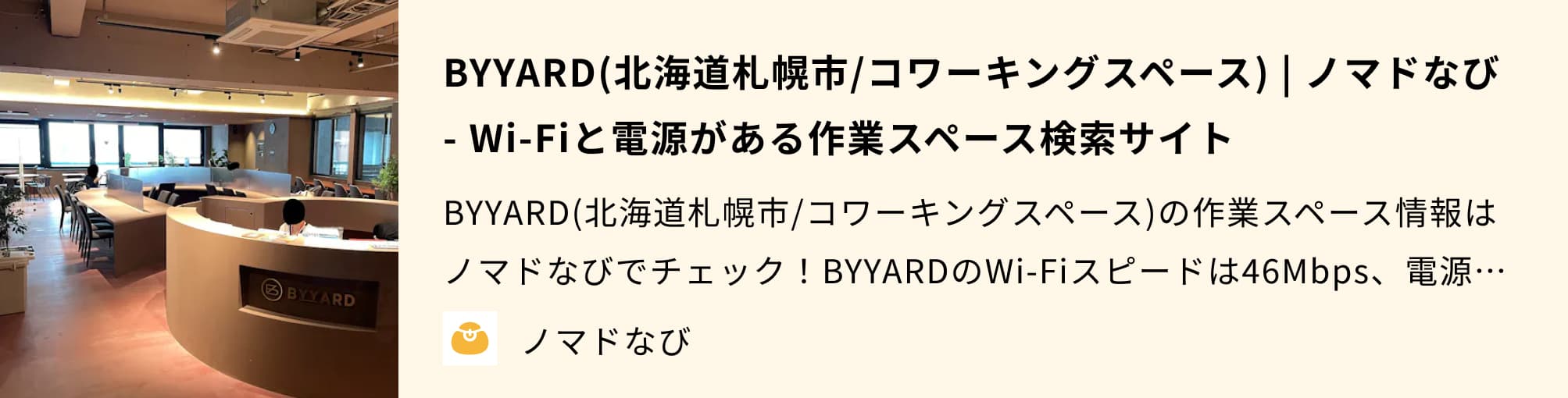 BYYARD is a coworking space located in Sapporo, Hokkaido.