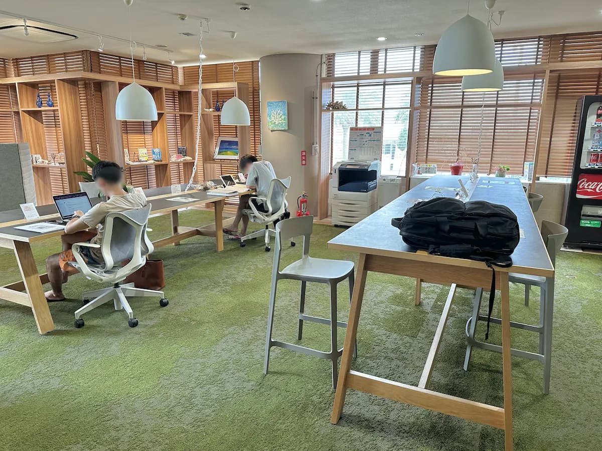 Coworking Lounge Hanauru is a free coworking space located in Nago City.There are about 12 seats with power outlets at the tables, excluding the sofa seats. Additionally, there are about 3 counter seats slightly away from the main space.The Wi-Fi speed is 87.90 Mbps for download. (※Measured value as of August 2023)For access, it's about a 5-minute walk from Nago Bus Terminal.You can use the hotel parking lot, so it's easy to visit by car as well.Although it's a coworking space set up in the hotel lobby, it's equipped with features that nomad workers will appreciate, such as extremely comfortable desk chairs and even standing tables.Moreover, it's free of charge! If you're doing a workation in the northern area, this is a workspace you'll want to visit daily.