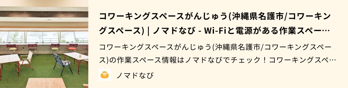 We've compiled a list of comfortable coworking spaces in northern Okinawa! Information on the number of power outlets, Wi-Fi speed, access details, and more is included.
