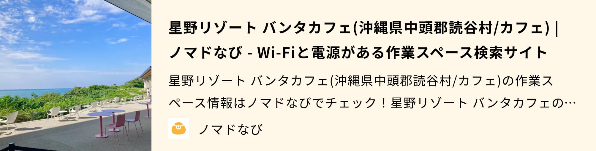 星野リゾート バンタカフェは沖縄県・読谷村にある電源カフェです。