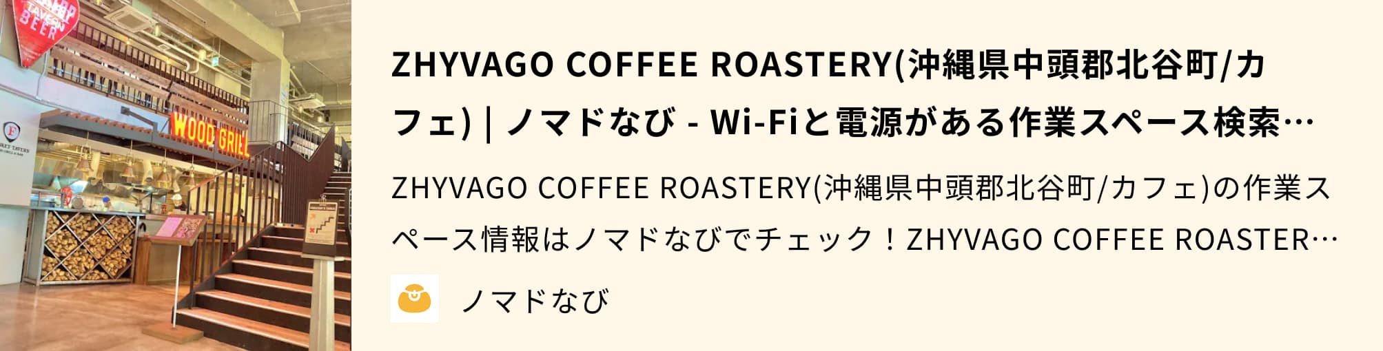 ZHYVAGO COFFEE ROASTERYは沖縄県・北谷町のアメリカンビレッジ内にある電源カフェです。