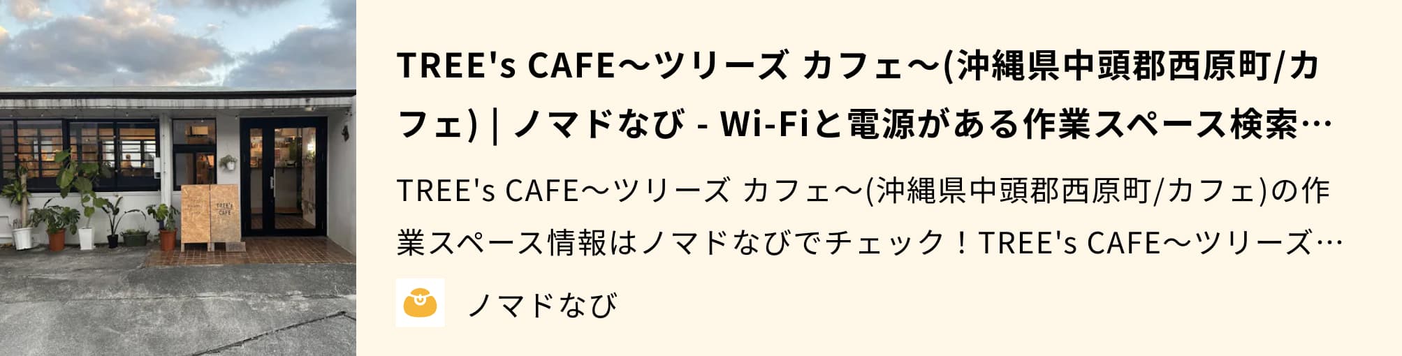 TREE’s CAFE〜ツリーズ カフェ〜は沖縄県・西原町にある電源カフェです。