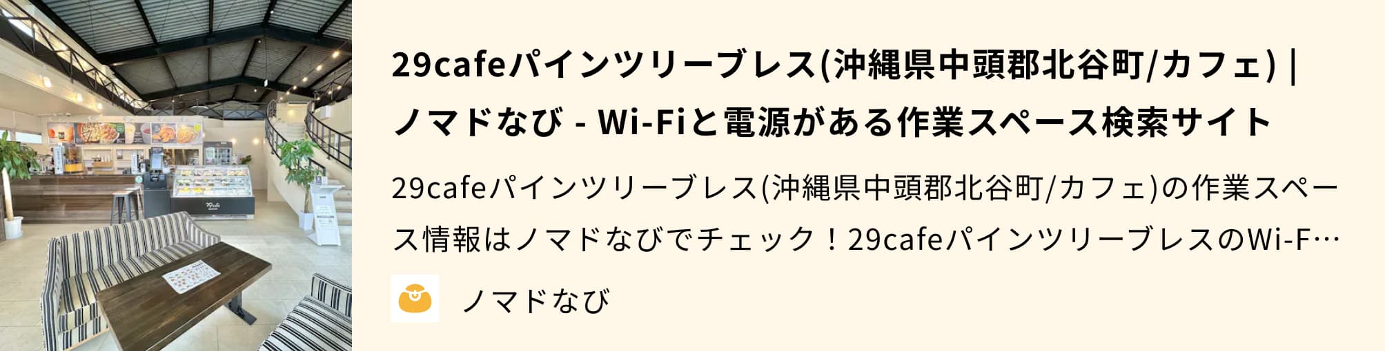 29cafeパインツリーブレスは沖縄県・北谷町にある電源カフェです。